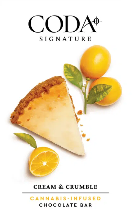 Escape to the Rockies with our Cream & Crumble infused chocolate. Creamy with a hint of crunch, Coda Signature’s sweet cannabis confection aptly named Cream & Crumble recreates the blissful moment of taking that first bite of luscious cheesecake. Milky white chocolate blends with tart sour cream and lemon, speckled with spiced crumble to give this handcrafted edible a unique combination of intensity and richness.