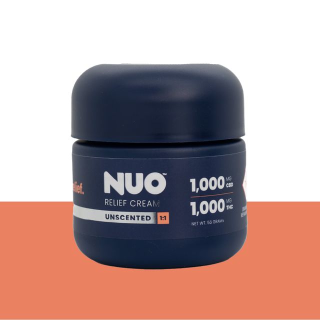 "1000mg CBD : 1000mg THC. NUO topicals have been developed with only the highest quality ingredients utilizing advanced pharmaceutical technologies and proven cosmetic techniques. With 2000mg of active cannabinoids and a proprietary microemulsion base, NUO cream provides improved skin penetration for faster, stronger relief. Designed for sensitive skin, NUO Unscented Relief Cream is free from additives like dyes, preservatives, and alcohol. This scent free, effective formula provides relief without irritation, making it perfect for those that prefer a gentle touch.
